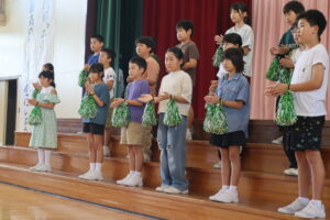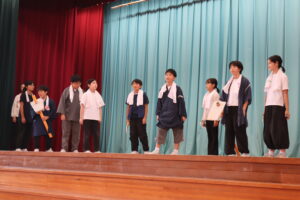学習発表会予行 2025年10月15日 福光南部小学校 1年生, 2年生, 3年生, 4年生, 5年生, 6年生 学習発表会の予行を行いました。 今日まで十分に練習を重ねてきた子供たちですが、緊張した表情の子供もたくさんいました。それでも、一人一人が大きな声でせりふを言ったり、美しい声で歌ったりするなど、精一杯がんばる様子が見られました。 発表を見合った他の学年の友達から大きな拍手をもらい、みんなが自信を深めた予行になりました。