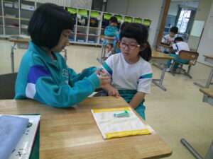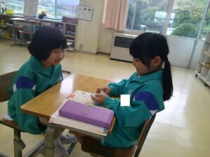 ひきざん(1・2年生) 2025年11月11日 福光南部小学校 ≪お知らせ≫ 算数科で繰り下がりのあるひき算の学習をしています。 今日は学習のまとめとして、ペアで計算カードを使って問題を出し合いました。 素早く正しく答えられるように集中して取り組みました。