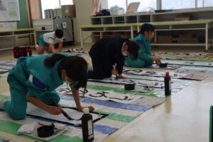 書初め大会 2026年1月8日 福光南部小学校 ≪お知らせ≫ 校内書初め大会を行いました。 子供たちは、一画ずつ集中して書き進めました。書き上がった作品には、冬休みに練習をがんばった成果が表れていました。