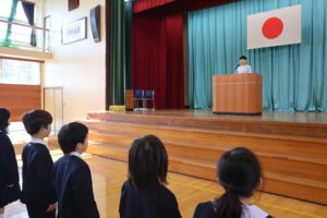 全員の児童が登校し、みんな一緒に新年度の式をはじめられたことをとてもうれしく思います。