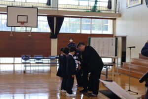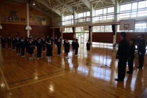 南砺市福光南部少年消防クラブ入団式(5・6年生) 2026年4月20日 福光南部小学校 ≪お知らせ≫ 南砺消防署から副署長様や西太美分団長を迎えて、少年消防クラブの入団式を行いました。 分団長様から消防クラブ員として行動してほしいことの話を聞きました。 その後、子供たちは入団の証である記章をいただき、 火災予防に努めるという誓いの言葉をみんなで言いました。
