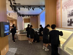 一日校外学習(6年生) 2025年11月13日 福光南部小学校 ≪お知らせ≫ 6年生は、一日校外学習で金沢市に行きました。石川県立歴史博物館では、縄弥・弥生時代の展示品や江戸時代の大名行列などのモデルで改めて歴史について学び直しました。いしかわ子ども交流センターでは、プラネタリウムで星・太陽・月についての映像を見たり、ペダルをこいで発電したりするなど科学の体験コーナーで学習しました。