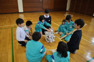 なかよし活動(2学期チャレンジカップ練習) 2025年11月14日 福光南部小学校 ≪お知らせ≫ 昼休みになかよし活動をしました。 12月に行うなかよし班対抗チャレンジカップの練習をしました。 今回は大波小波を跳んだり、上履きでタワーを作ったりする6種目で競います。今日は競技のコツをつかもうとみんなで試行錯誤しながら練習しました。