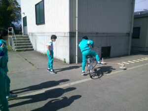 「交通安全こども自転車 富山県大会」に向けて 2026年4月14日 福光南部小学校 ≪お知らせ≫, 6年生 本校では、今年の大きな活動の一つに「交通安全こども自転車 富山県大会」の出場があります。 6年生が、南砺市の代表で県大会に出場する予定です。 この大会への練習を通して、自転車の交通ルールや安全な乗り方を学びます。 今日は、実技テストに向けて練習をしました。 これから練習をして、上達を目指します。