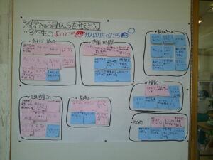 「わくわくする」学校について考えよう(3・4年生) 2026年4月14日 福光南部小学校 3年生, 4年生 3・4年生合同で、今年度の学校重点目標でもある「わくわくする」学校とはどんな学校なのかを考えました。 子供たちからは、「友達と話すとわくわくする」「いろんなことに挑戦するとわくわくする」などの様々な声が出ました。 話し合ったことを基に、各学級で学級目標を話し合いました。 自分たちが目指す姿について具体的に出し合ったことで、これからの学校生活への意欲が高まりました。