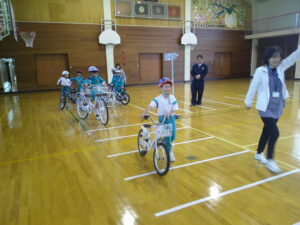 ご指導いただいた駐在所の皆様、そしてお忙しい中、練習コースの設営や片付け、見守りにご協力いただいた育成会学級委員の皆様、自転車の点検、準備にご協力いただいた保護者の皆様ありがとうございました